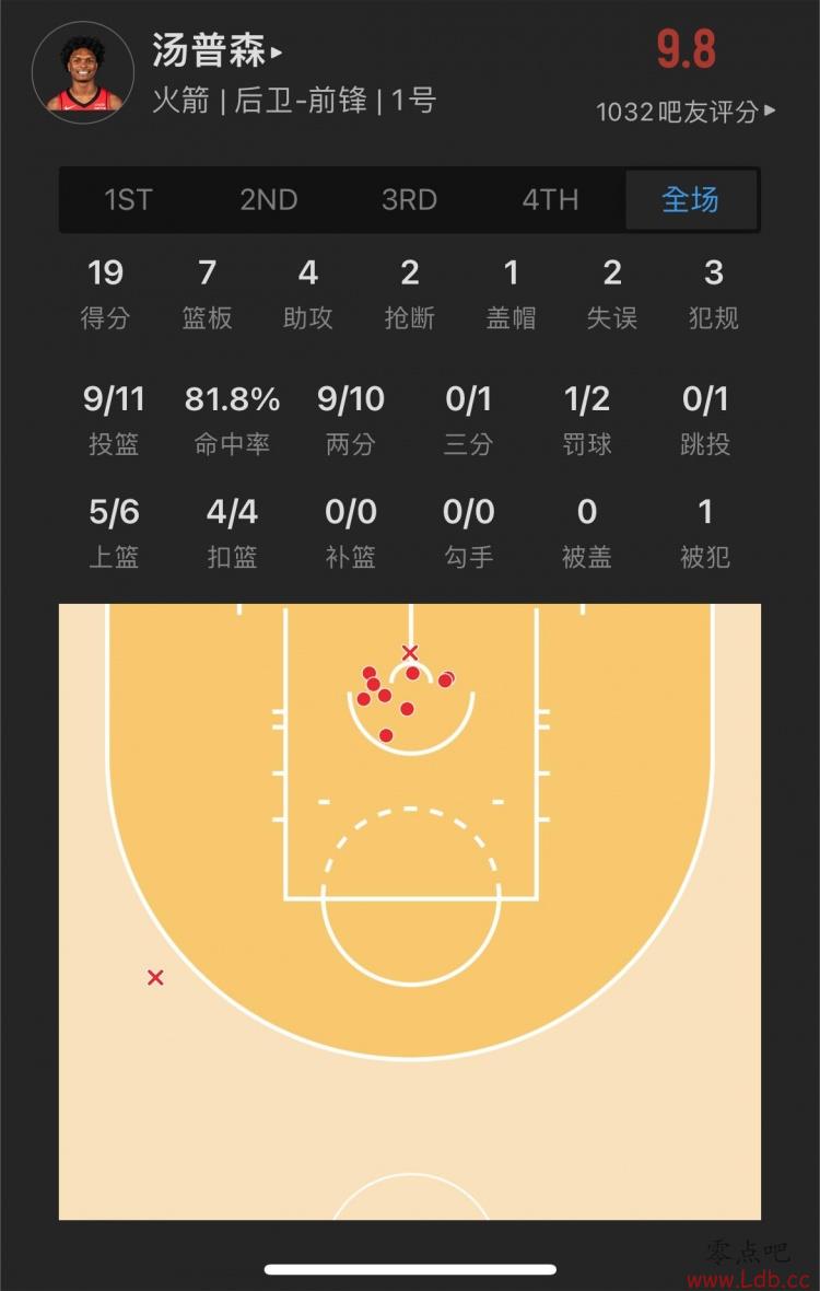 火箭4号秀 阿门-汤普森 出战24.2分钟