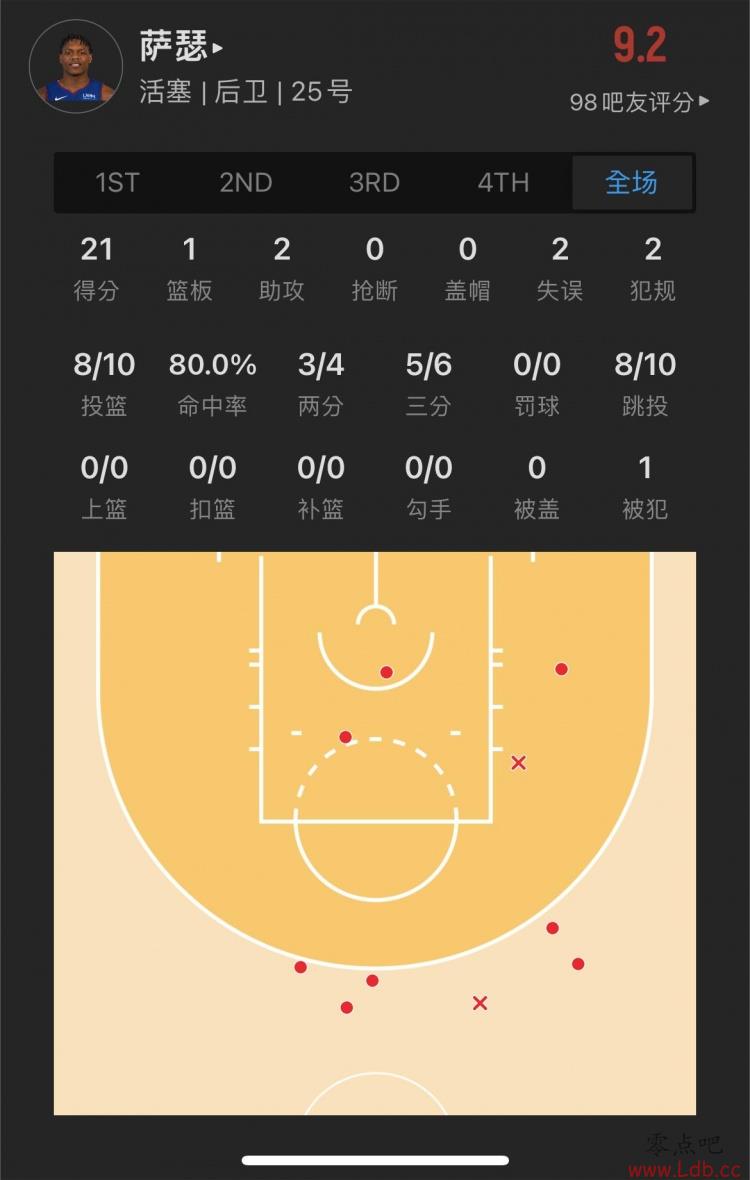 活塞25号秀 马库斯-萨瑟 出战20.5分钟