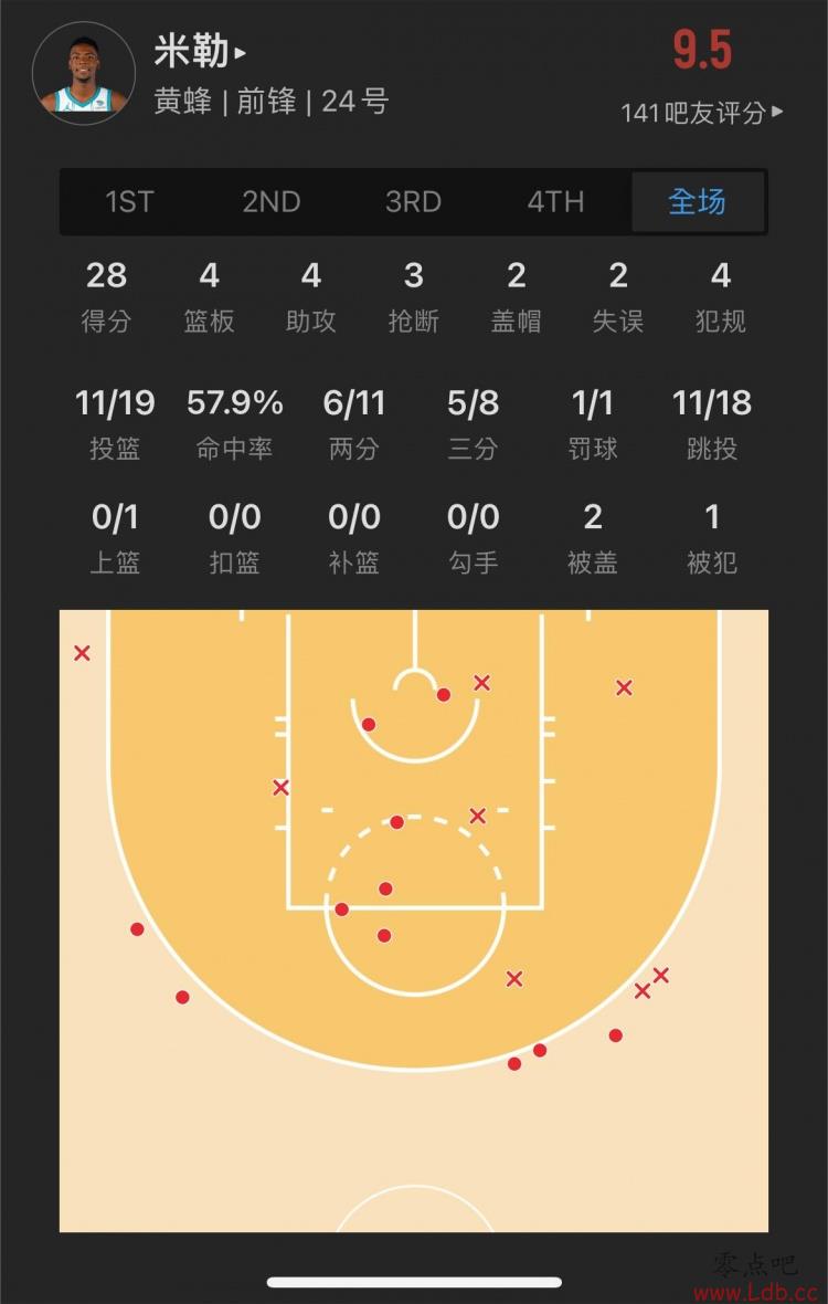黄蜂榜眼秀 布兰登-米勒 出战31.7分钟