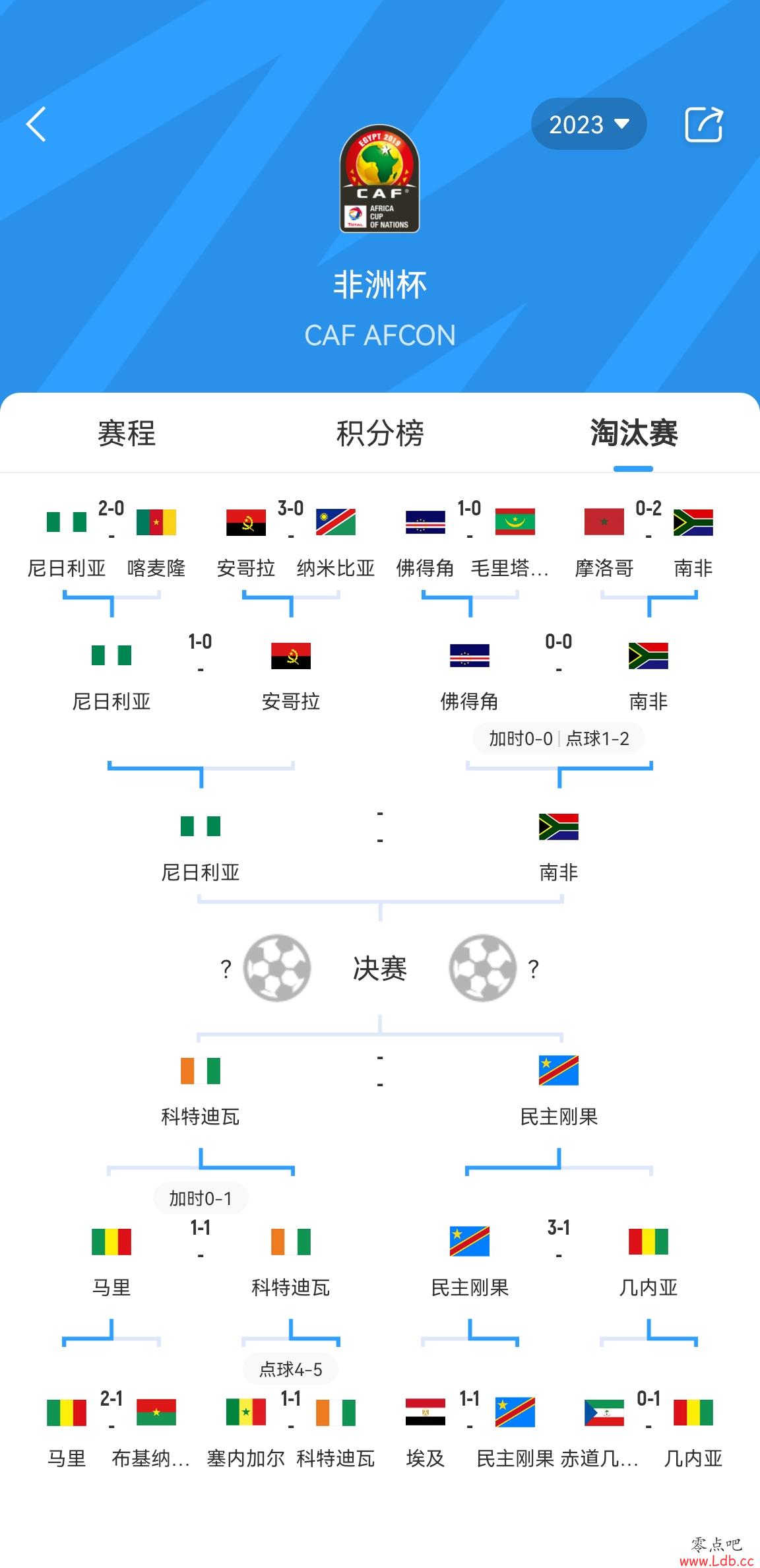 半决赛对阵出炉,科特迪瓦vs民主刚果,尼日利亚vs南非。