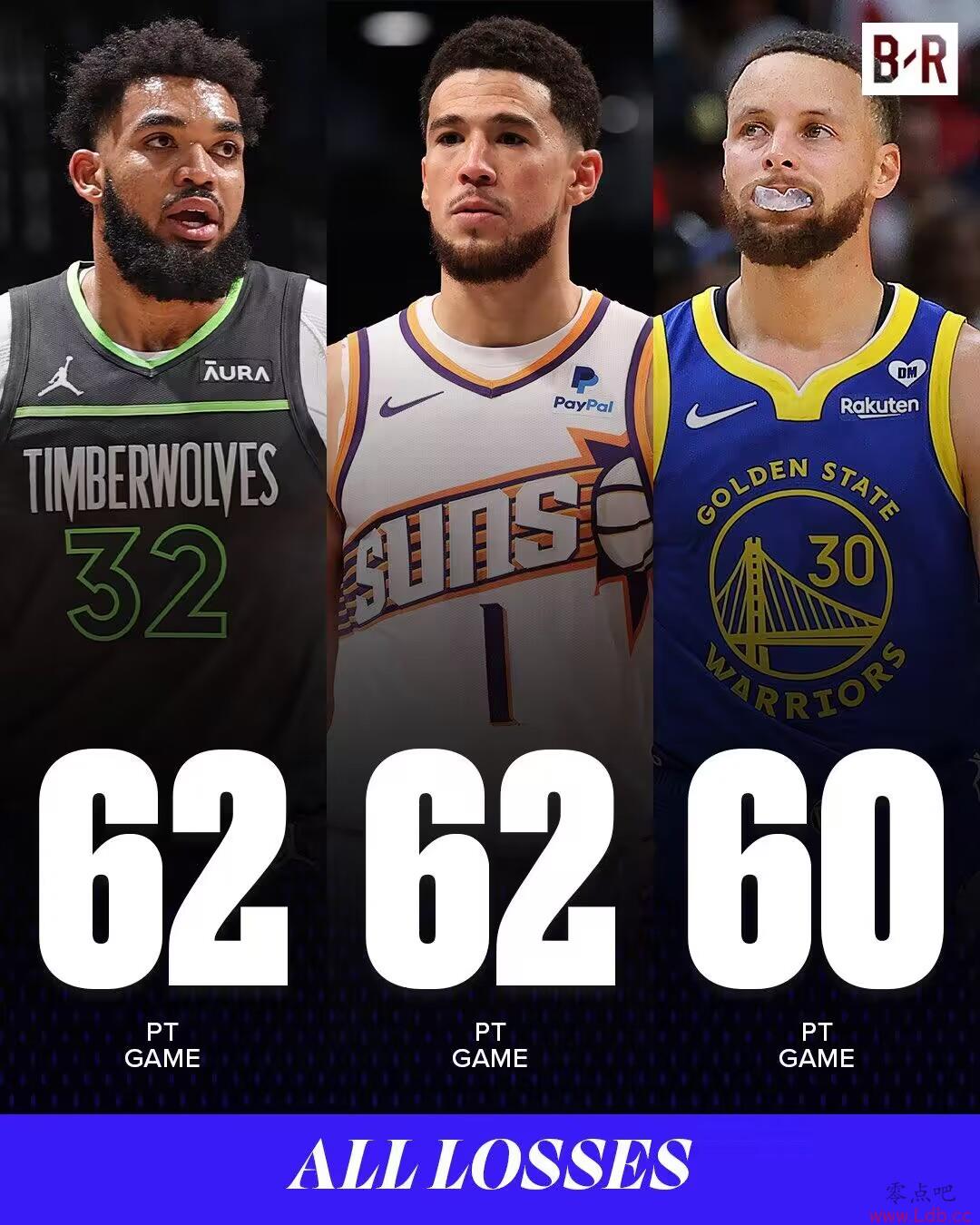 本赛季三次60+空砍!唐斯布克62分库里60分全部输球
