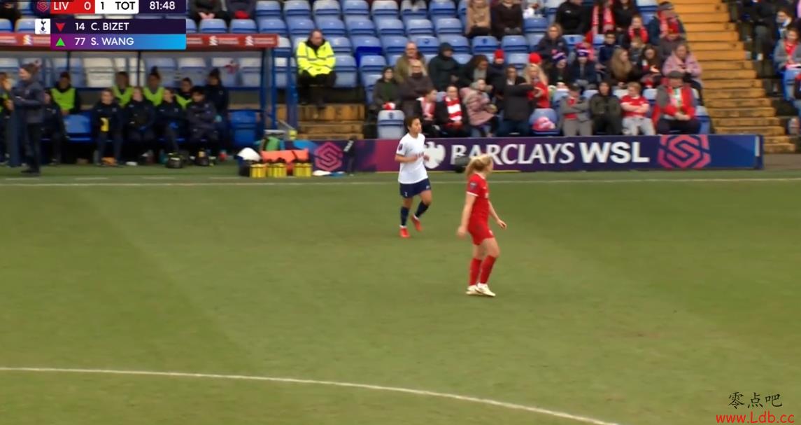 零点吧足球02月04日讯 英女超第13轮,热刺女足1-1遭利物浦女足补时绝平。中国球员王霜第82分钟替补登场。