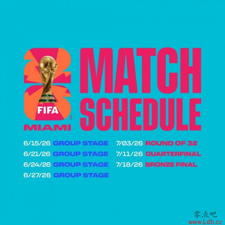 零点吧足球2月5日讯 官方消息,作为2026年世界杯的举办城市之一,迈阿密将承办7场比赛:4场小组赛、1场1/16决赛、1场1/4决赛和三四名决赛。