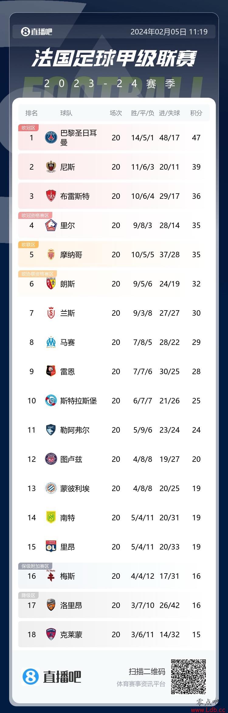零点吧足球02月05日讯 五大联赛中多个联赛争冠逐渐白热化。