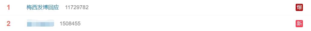 “梅西发博回应”迅速登上热搜榜第一,热度断层领先