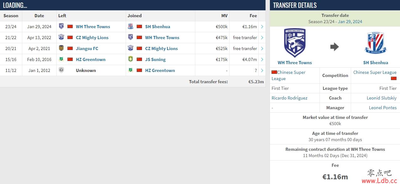 零点吧足球02月07日讯 德国转会市场网站显示,谢鹏飞从武汉三镇加盟上海申花的转会,转会费为116万欧元(约900万人民币)。