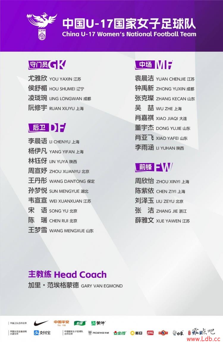 中国U17女足集训名单:范埃格蒙德挂帅,27名球员入选