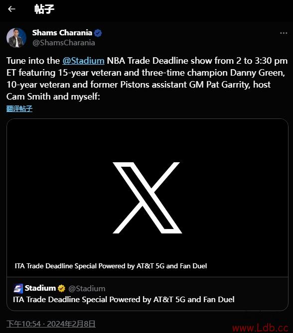 零点吧02月08日讯 2024年NBA交易截止日,名记Shams在当地时间早上10时发推,表示自己开始工作。