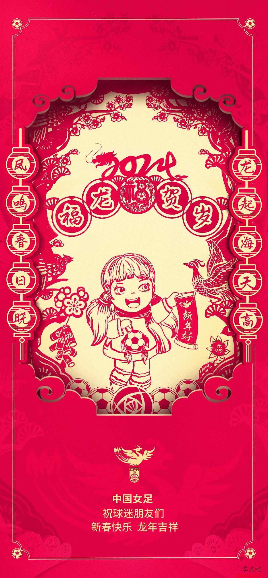 龙起海天高,凤鸣春日晓!中国女足祝球迷朋友们新春快乐,阖家幸福,身体健康,龙年吉祥!新的一年,我们继续并肩作战,共筑女足辉煌!