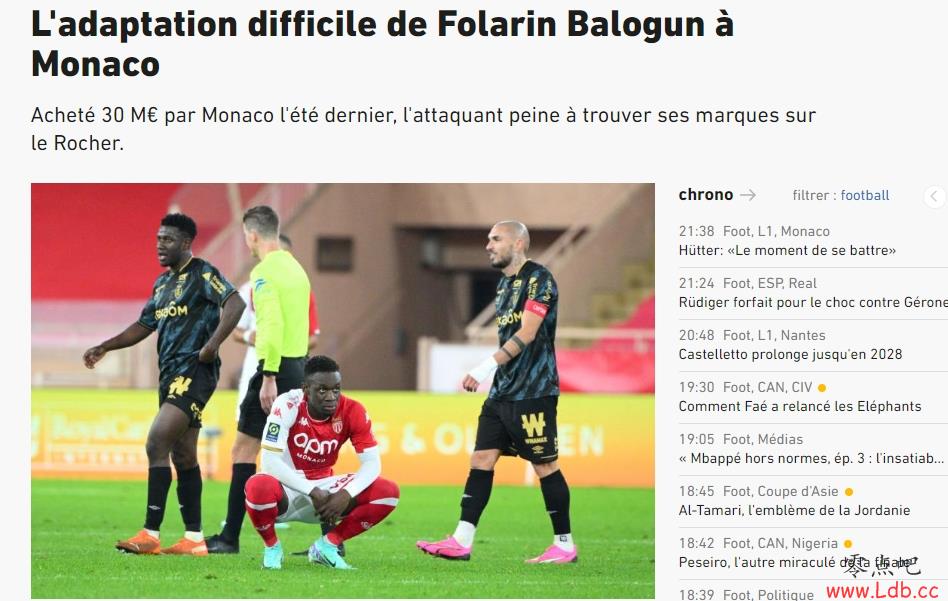 零点吧足球2月10日讯 上赛季法甲37场打进21球的巴洛贡在转会摩纳哥后,本赛季联赛15场仅打进4球,法媒《队报》也谈到了球员在新球队适应艰难的情况。