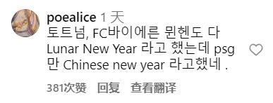 热刺拜仁都说过Lunar New Year,只有巴黎说Chinese New Year