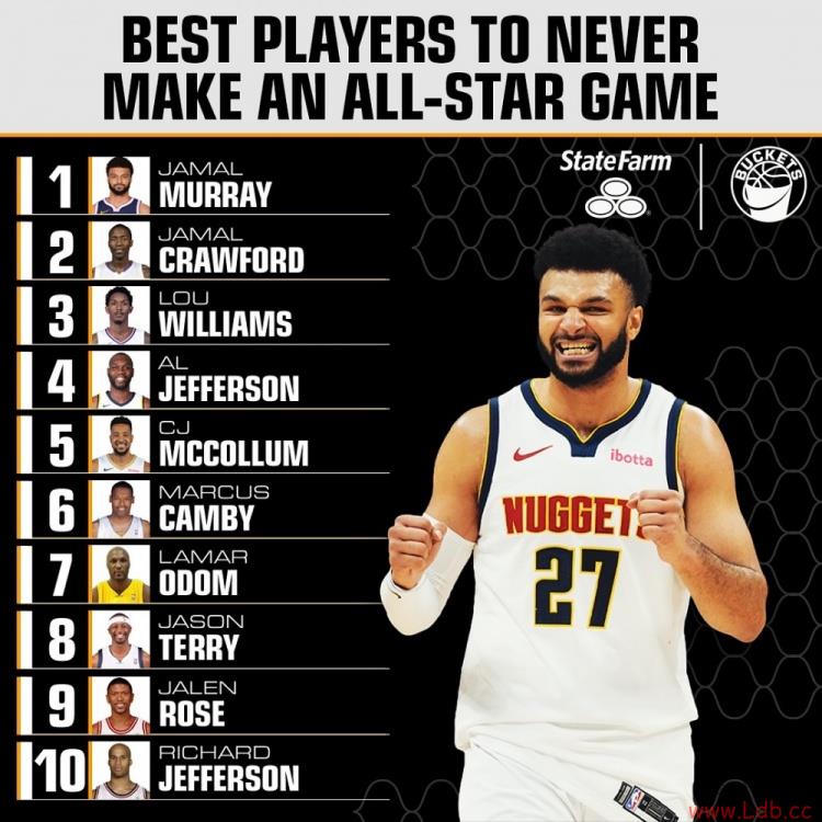 美媒Buckets评10大无缘全明星球员:贾马尔-穆雷、克劳福德、路-威廉姆斯、艾尔-杰弗森、CJ、马库斯-坎比、奥多姆、吉森-特里、杰伦-罗斯、理查德-杰弗森