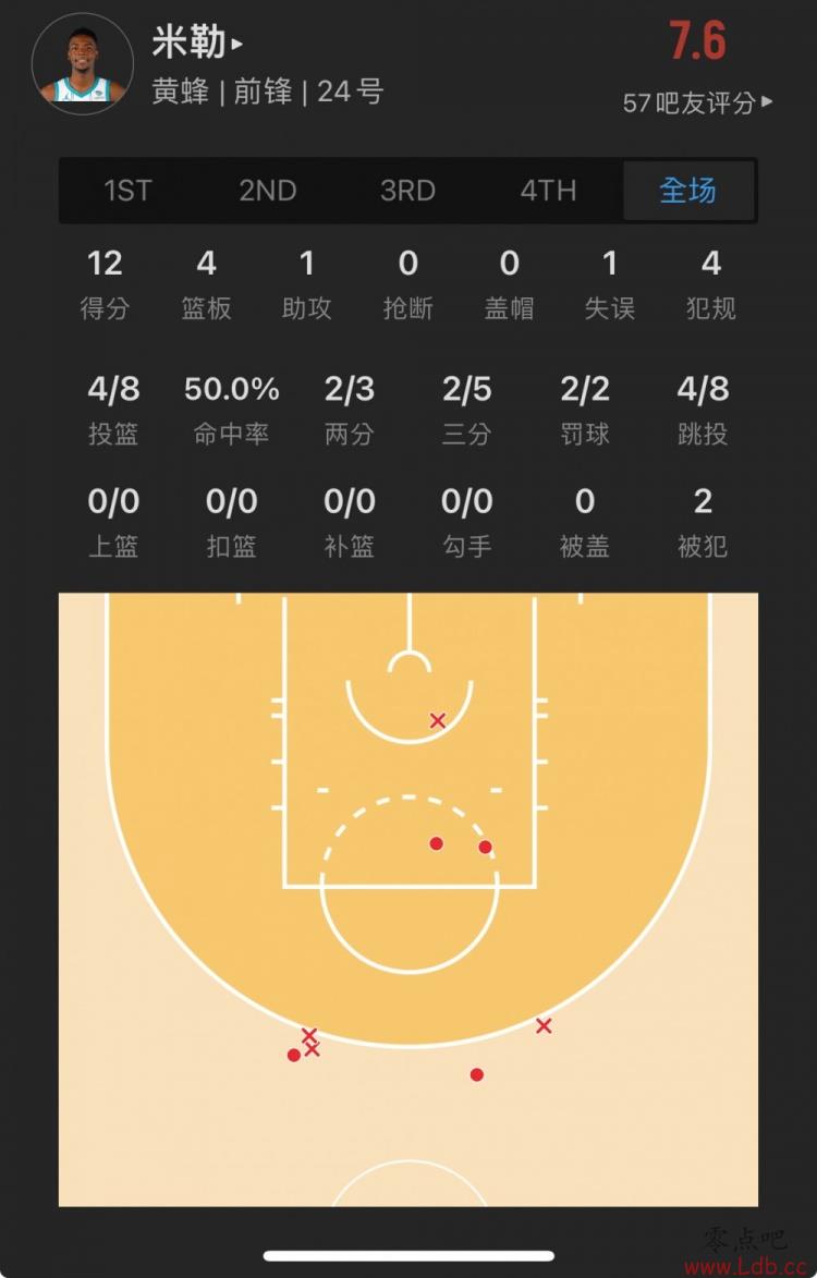 黄蜂榜眼秀 布兰登-米勒 出战28.7分钟