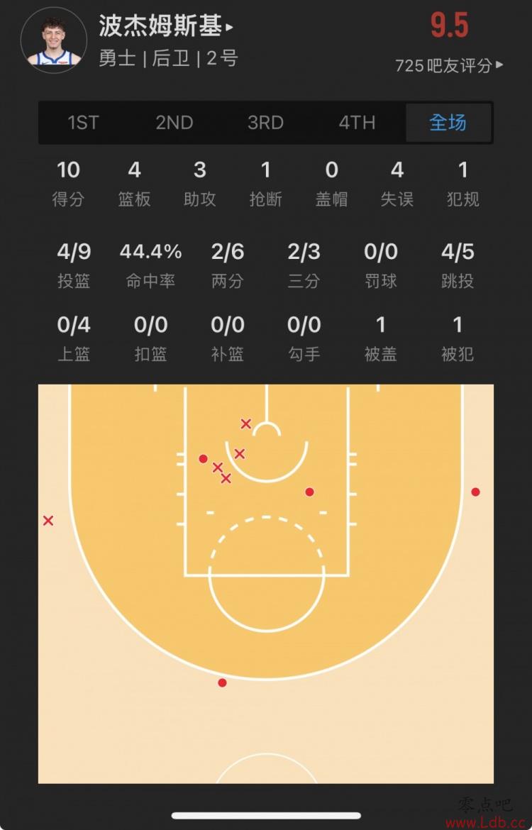 勇士19号秀 布兰丁-波杰姆斯基 出战24.9分钟