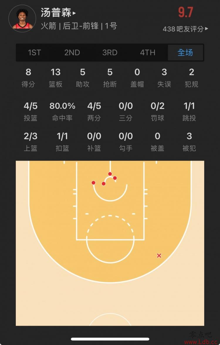 火箭4号秀 阿门-汤普森 出战38.3分钟