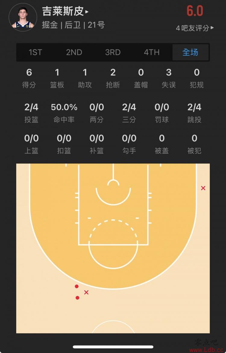 掘金落选秀 科林-吉莱斯皮 出战13.2分钟