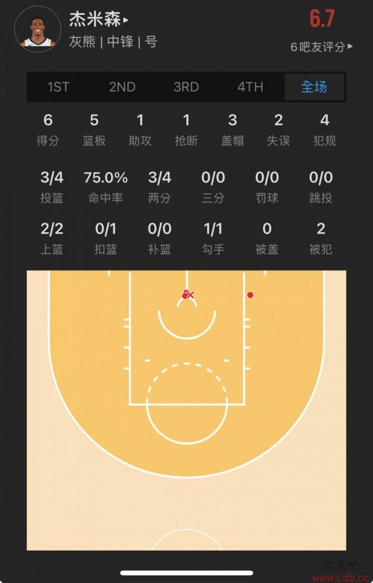灰熊落选秀 特雷-杰米森 出战17.7分钟