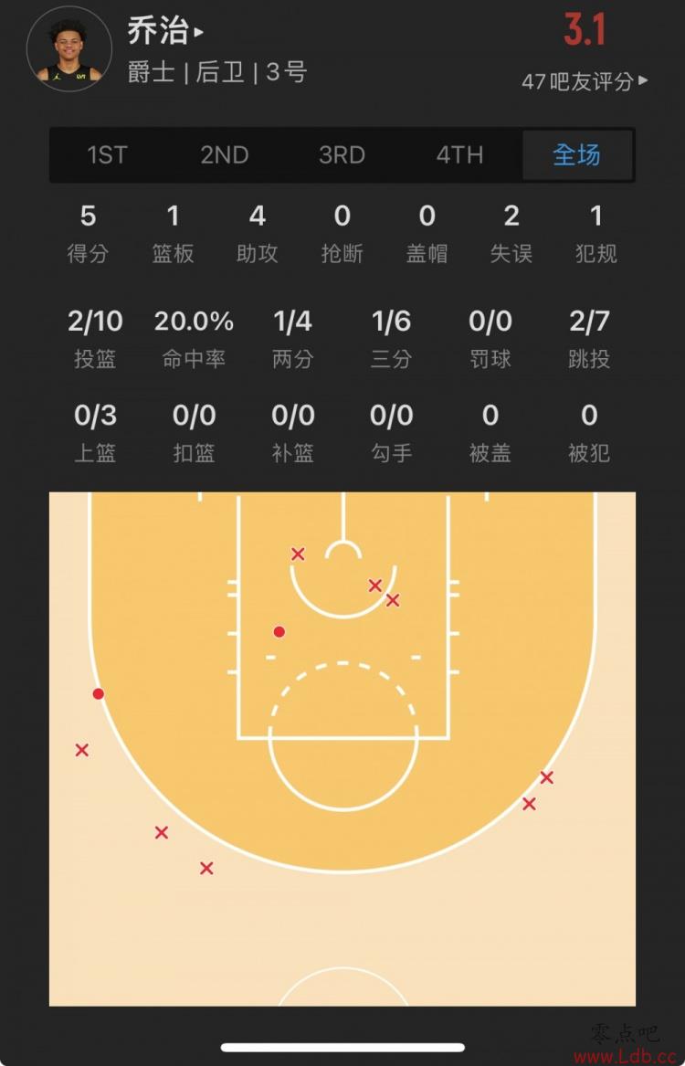 爵士16号秀 基昂特-乔治 出战29.3分钟
