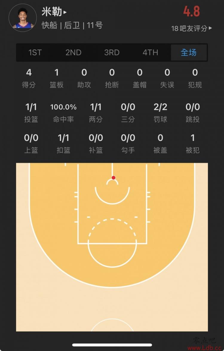 快船48号秀 乔丹-米勒 出战4.9分钟