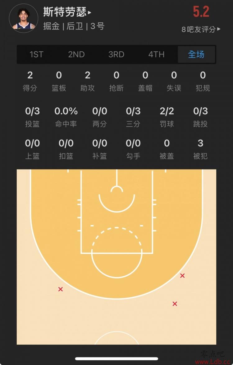 掘金29号秀 朱利安-斯特劳瑟 出战6.7分钟