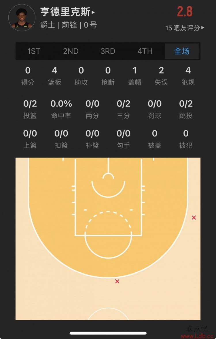 爵士9号秀 泰勒-亨德里克斯 出战19.3分钟