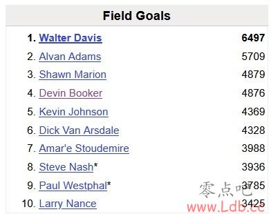三节战罢,布克14中4拿到15分。至此,布克运动战命中数来到4880个,他超越马里昂独占太阳队史第3位。榜单详情如下: