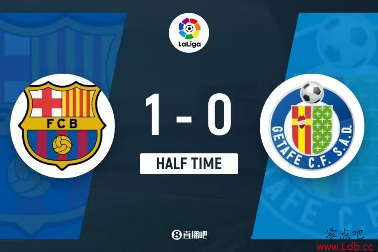 上半场比赛结束,巴塞罗那1-0赫塔费。
