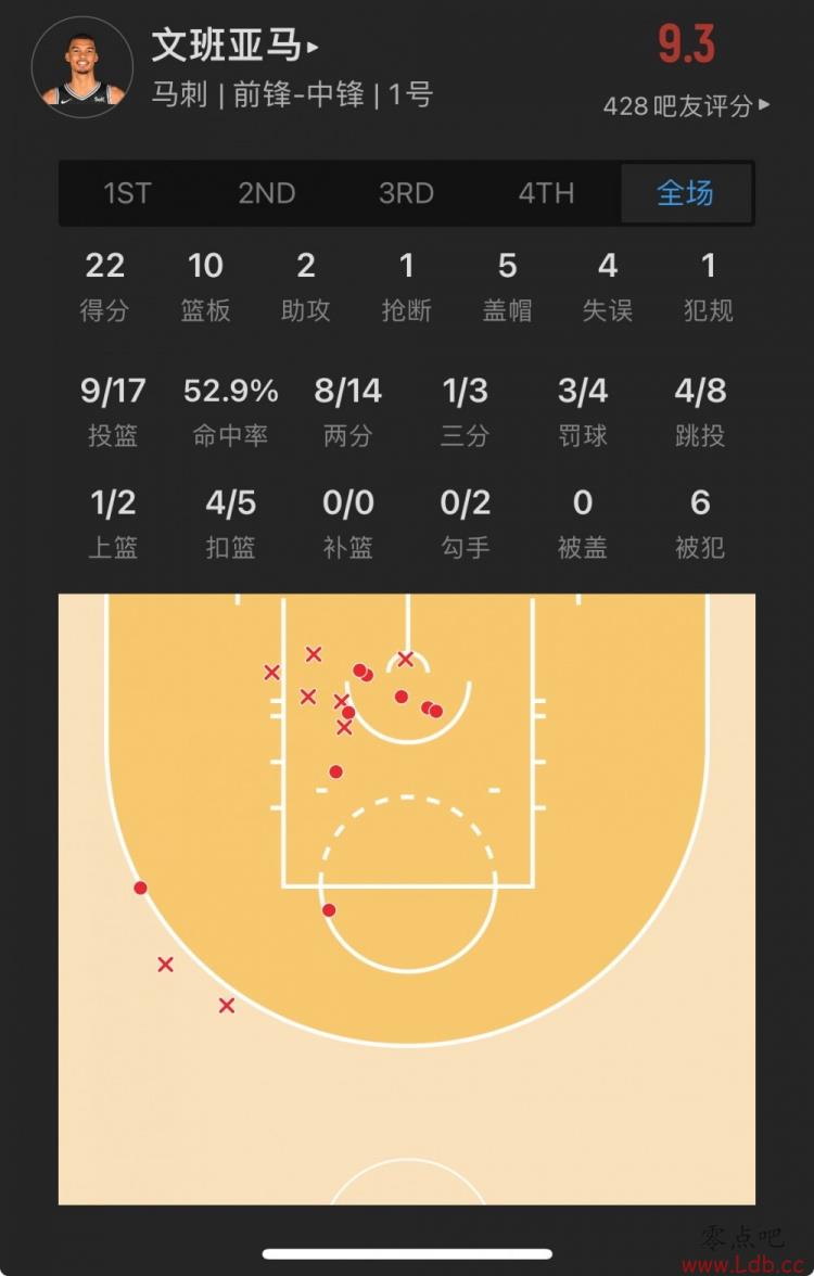 马刺状元秀 维克托-文班亚马 出战27.0分钟