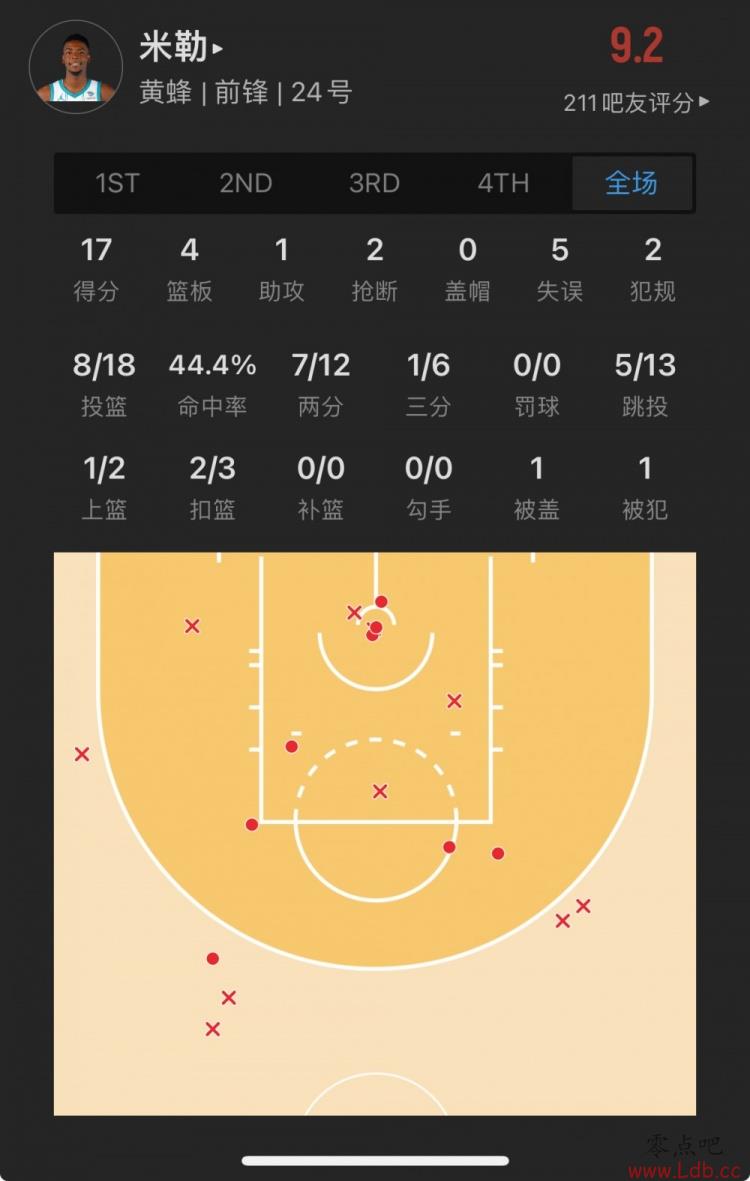 黄蜂榜眼秀 布兰登-米勒 出战38.2分钟