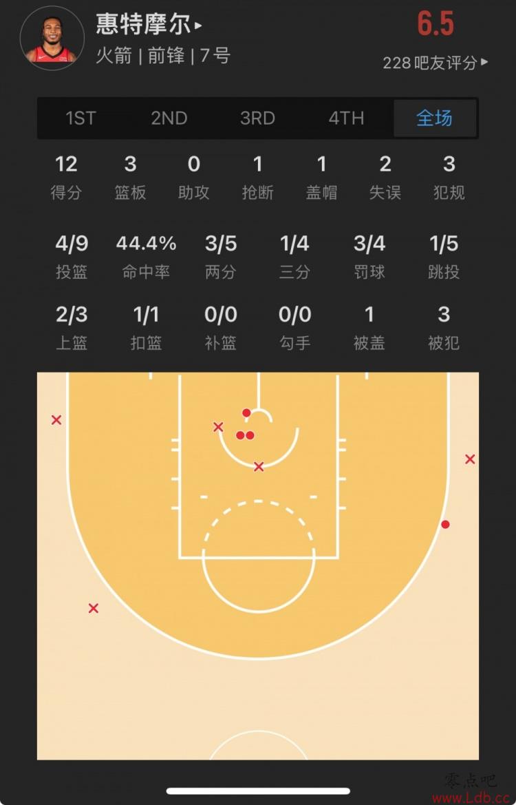火箭20号秀 卡姆-惠特摩尔 出战16.7分钟