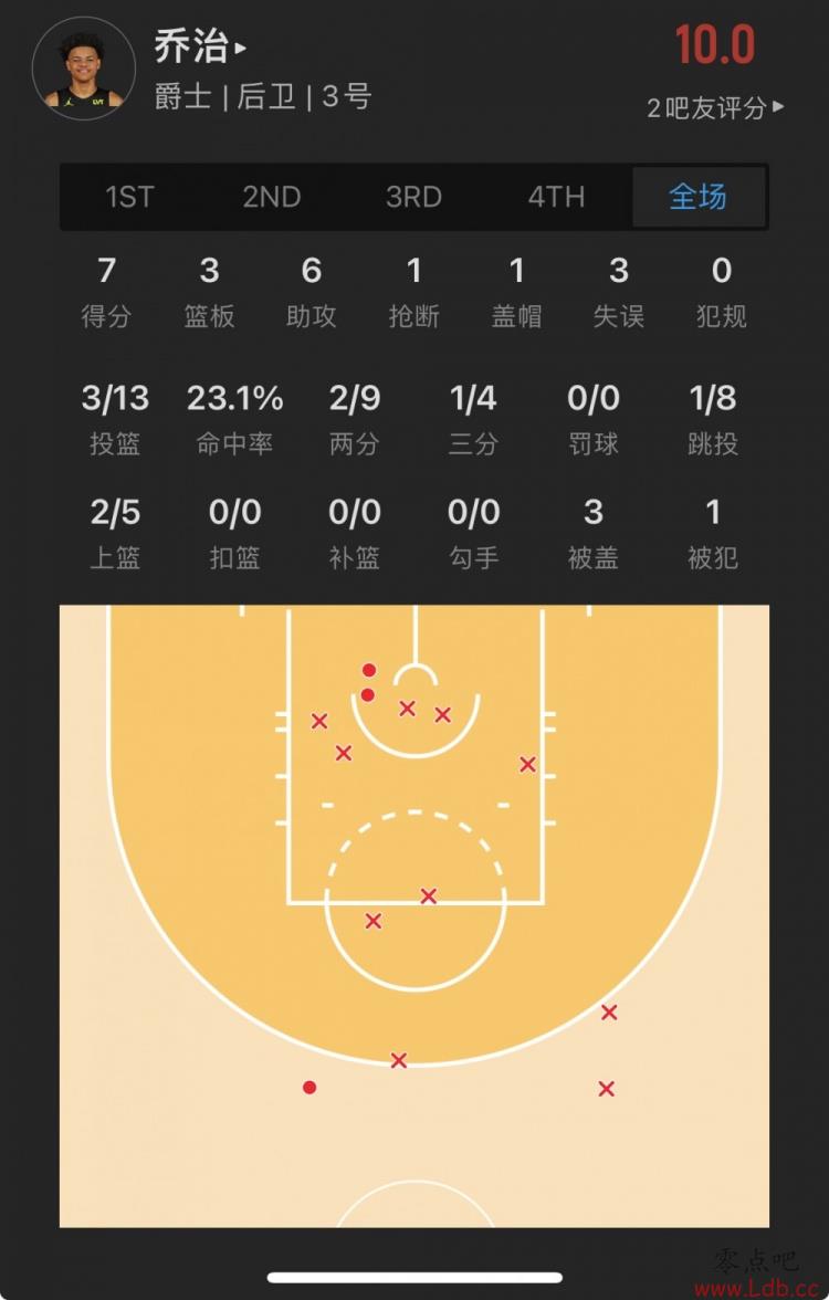 爵士16号秀 基昂特-乔治 出战30.3分钟