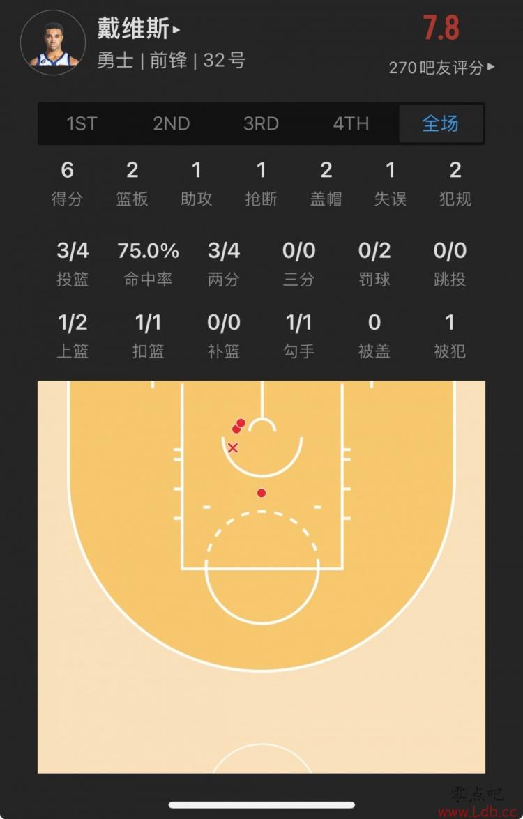勇士57号秀 特雷斯-杰克逊-戴维斯 出战12.5分钟