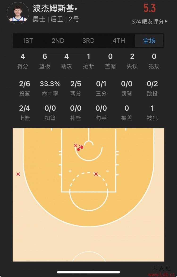 勇士19号秀 布兰丁-波杰姆斯基 出战30.1分钟