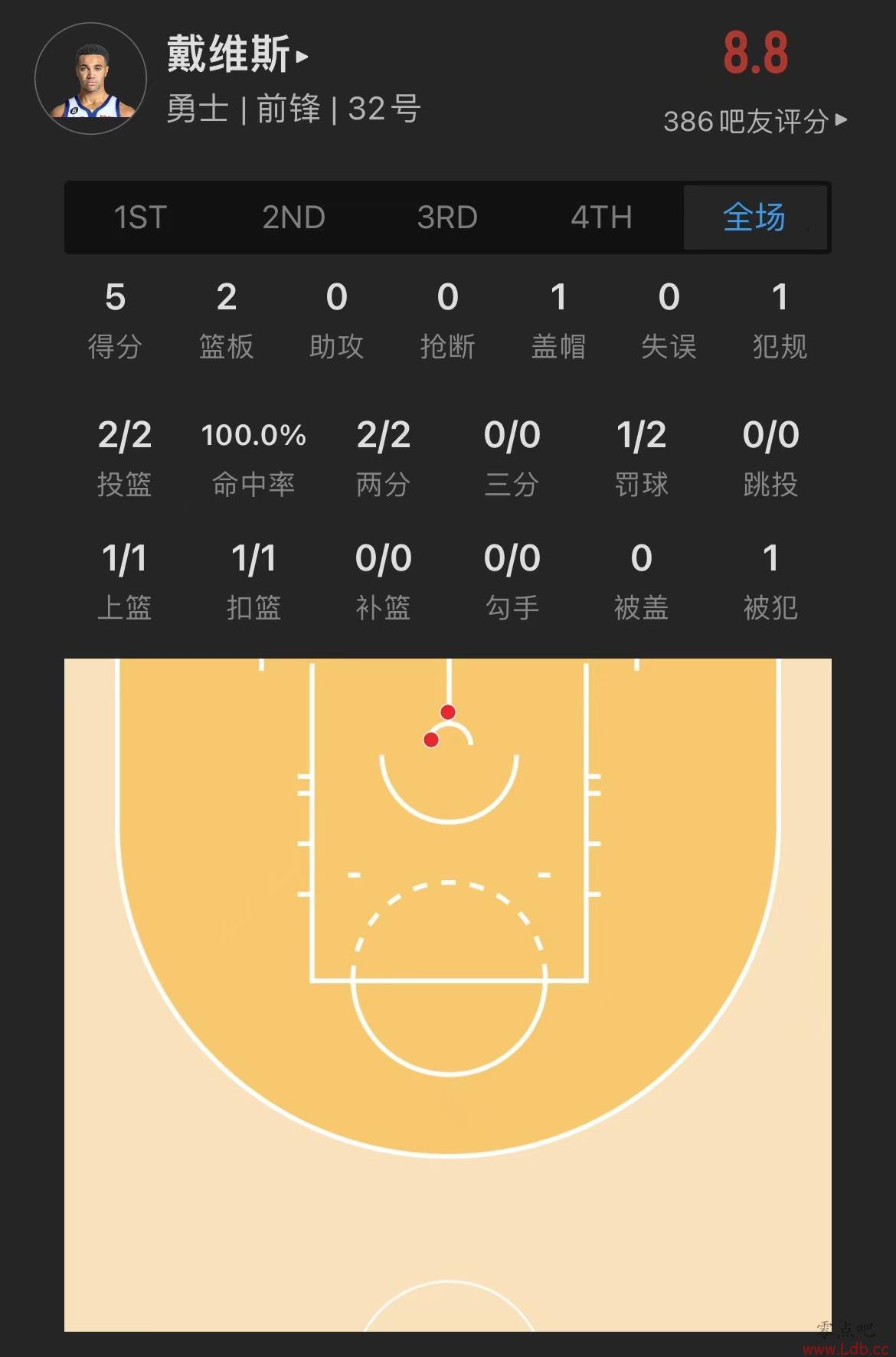 勇士57号秀 特雷斯-杰克逊-戴维斯 出战8.8分钟