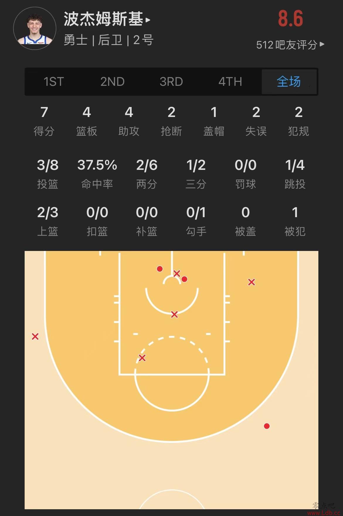 勇士19号秀 布兰丁-波杰姆斯基 出战28.1分钟