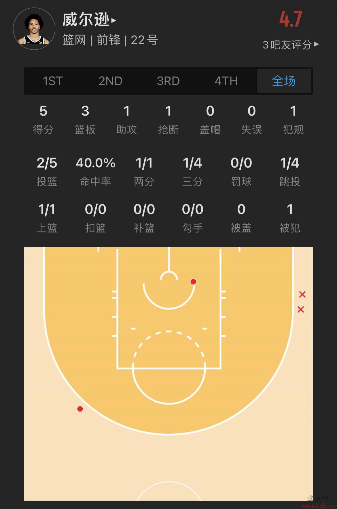 篮网51号秀 杰伦-威尔逊 出战23.3分钟
