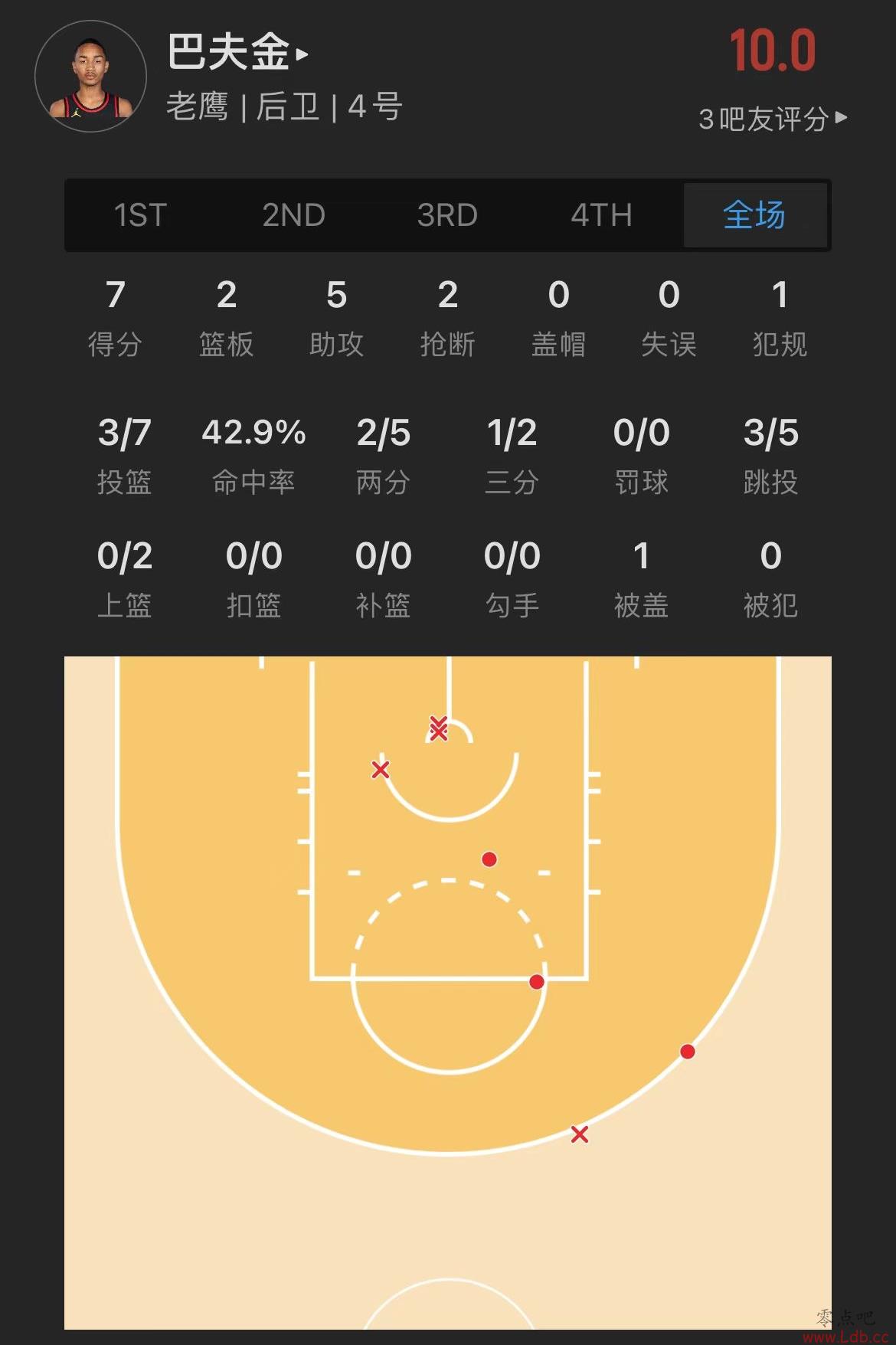 老鹰15号秀 科比-巴夫金 出战21.1分钟