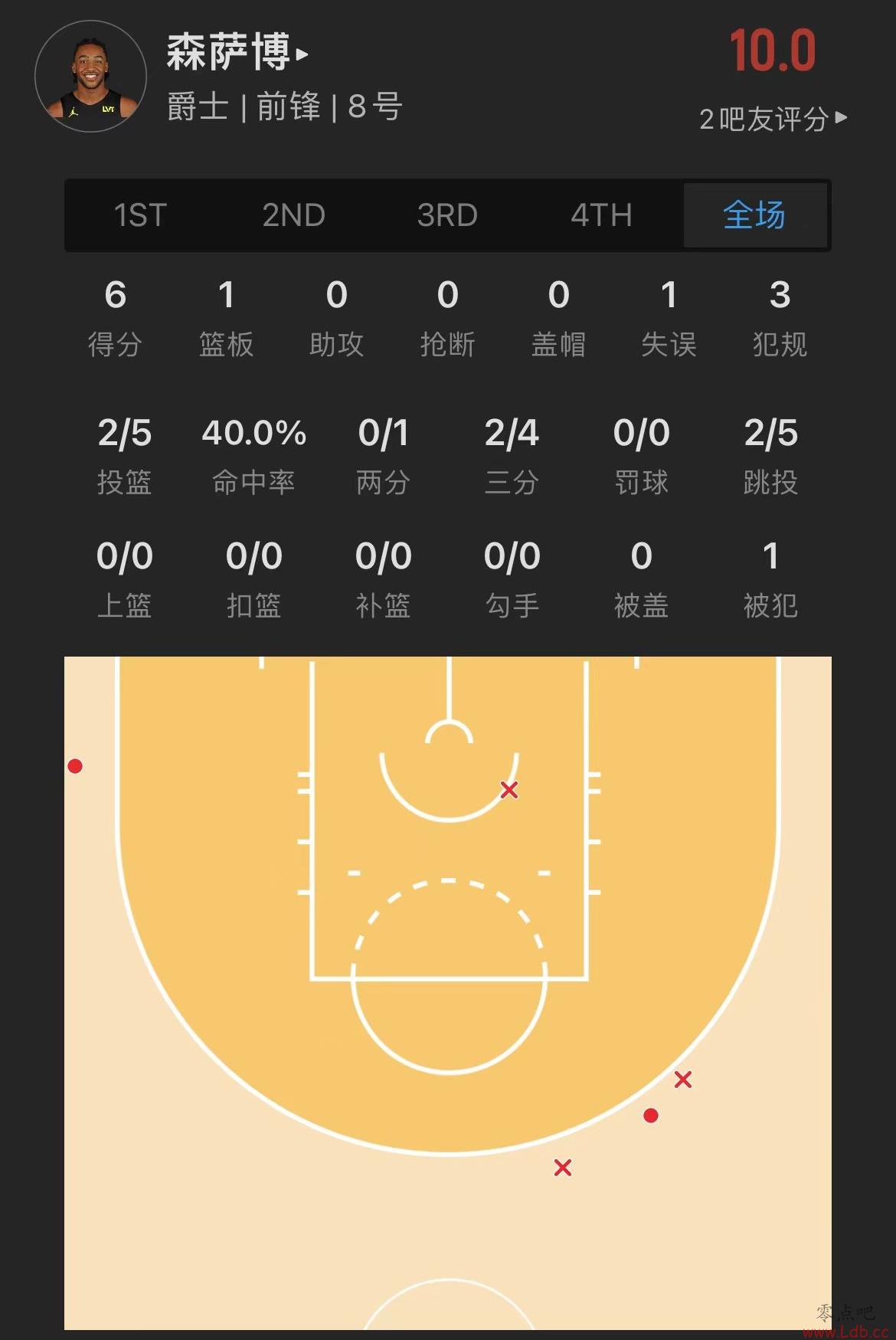 爵士28号秀 布莱斯-森萨博 出战17.4分钟
