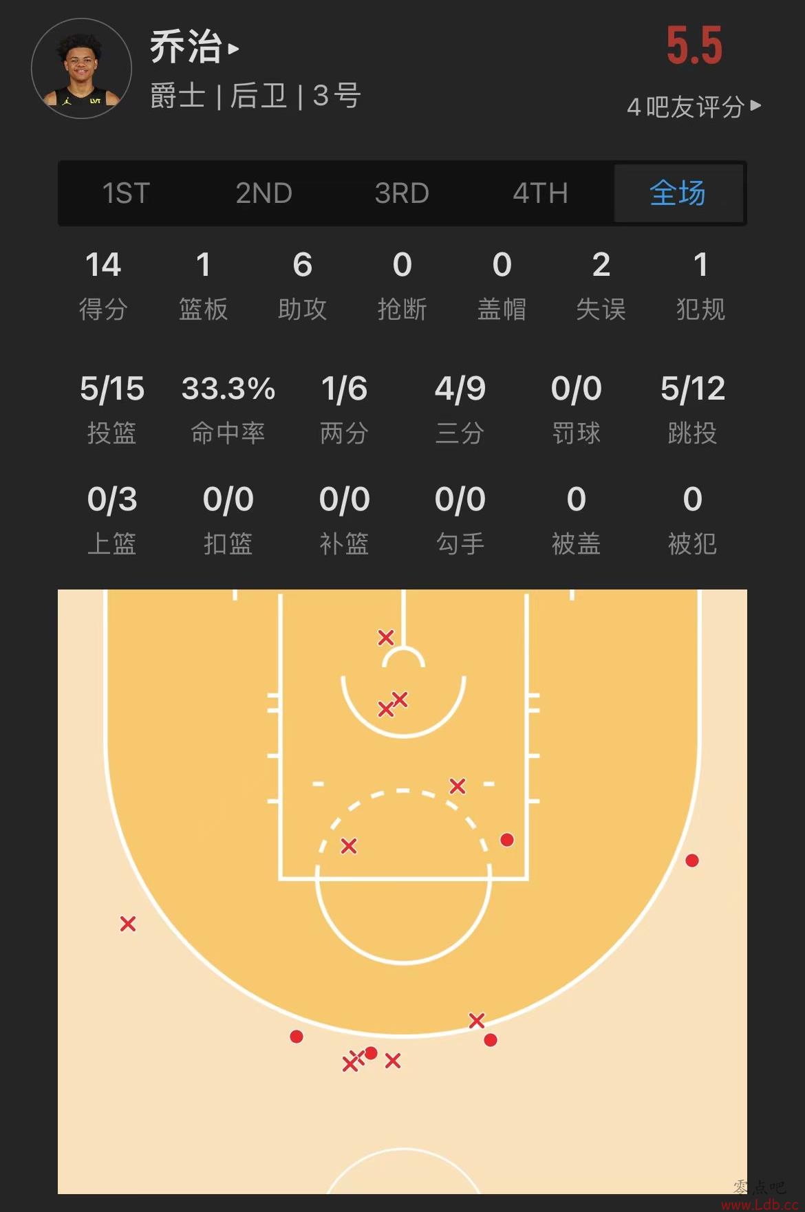 爵士16号秀 基昂特-乔治 出战28.3分钟