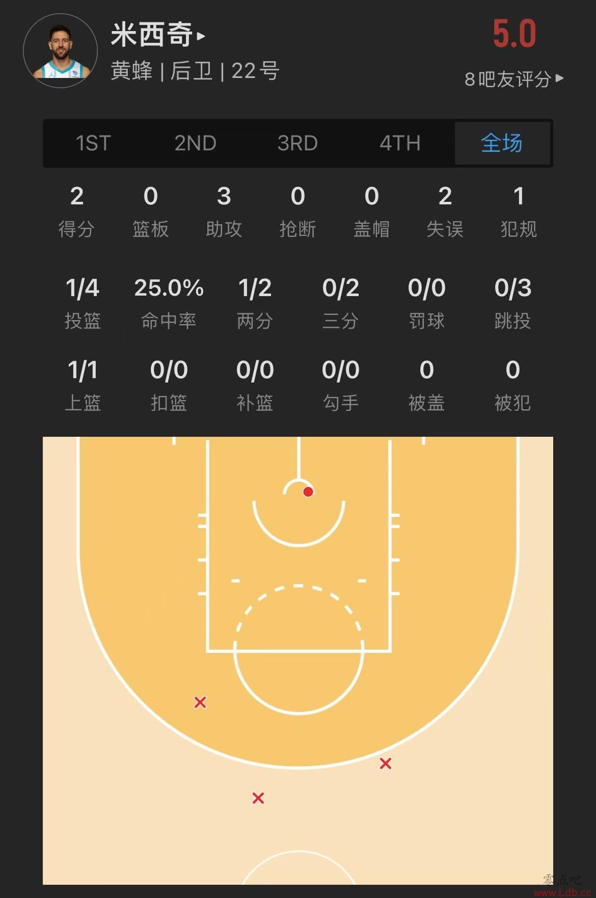 黄蜂14届52号秀 瓦西里耶-米西奇 出战16.5分钟