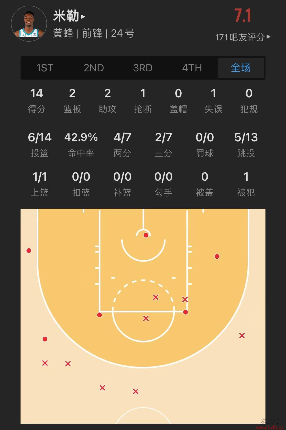 黄蜂榜眼秀 布兰登-米勒 出战32.7分钟