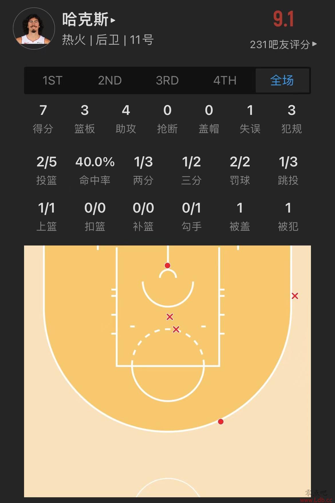 热火18号秀 小海梅-哈克斯 出战29.4分钟