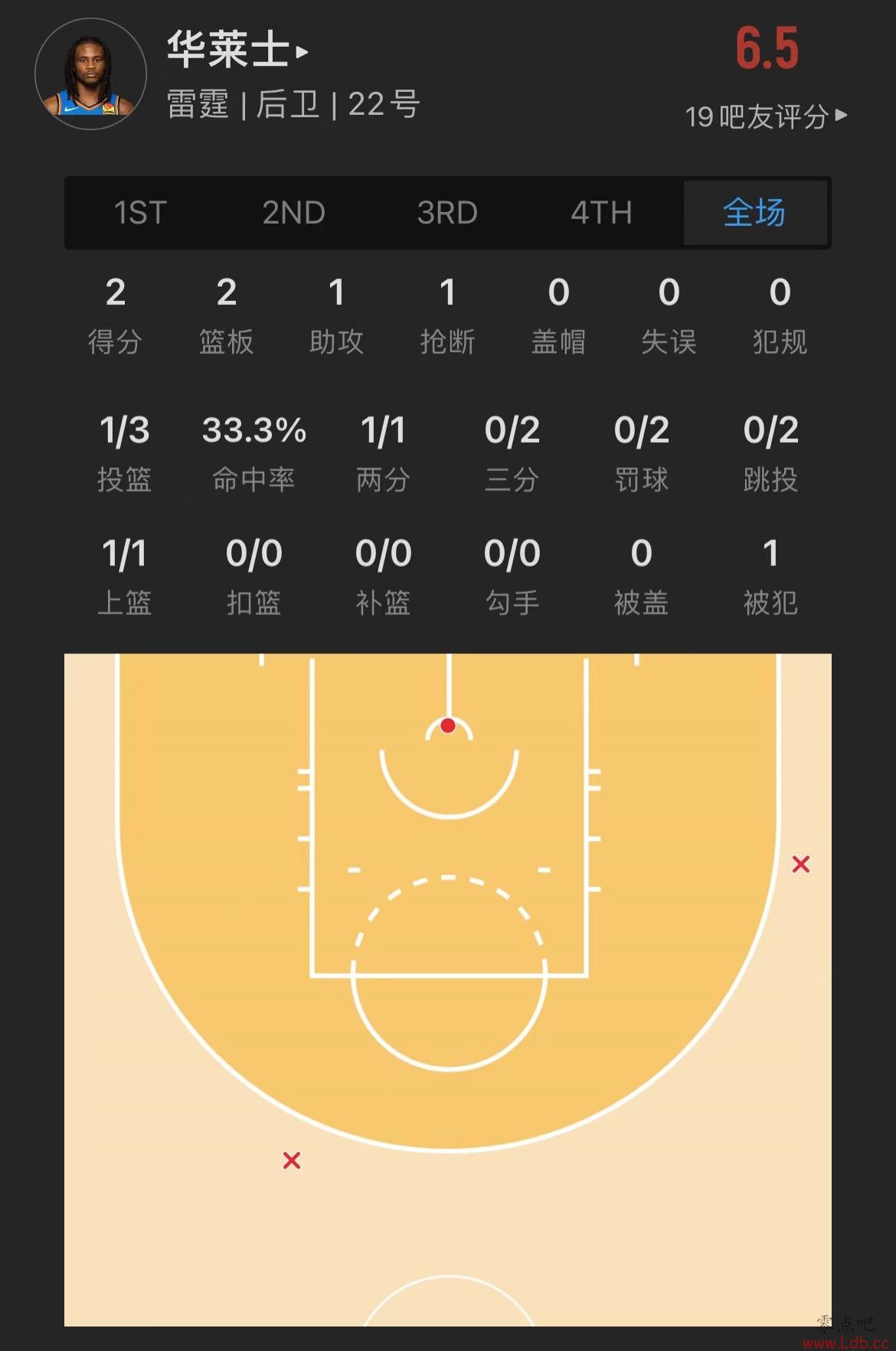 雷霆10号秀 卡森-华莱士 出战14.3分钟