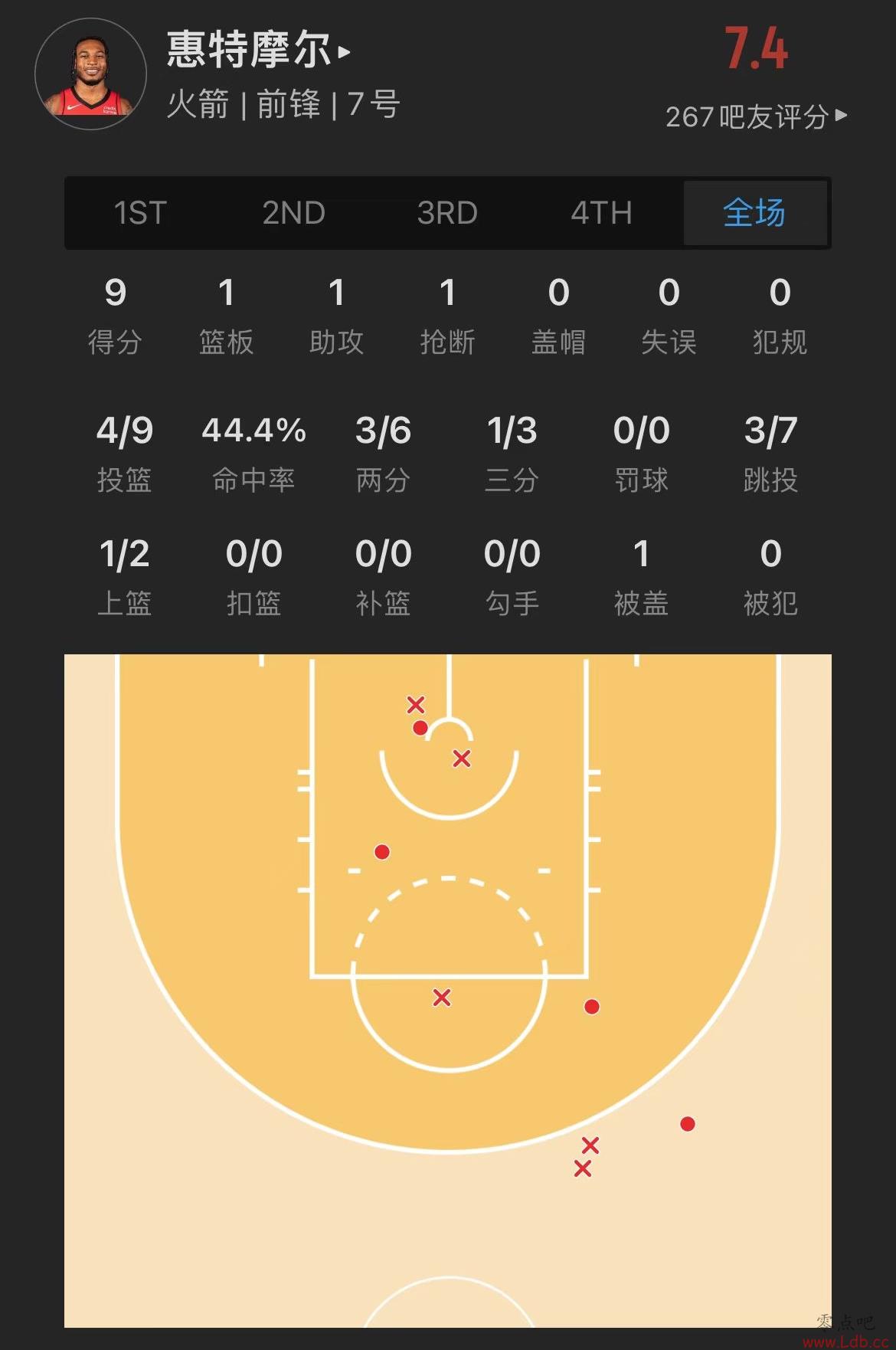 火箭20号秀 卡姆-惠特摩尔 出战16.0分钟