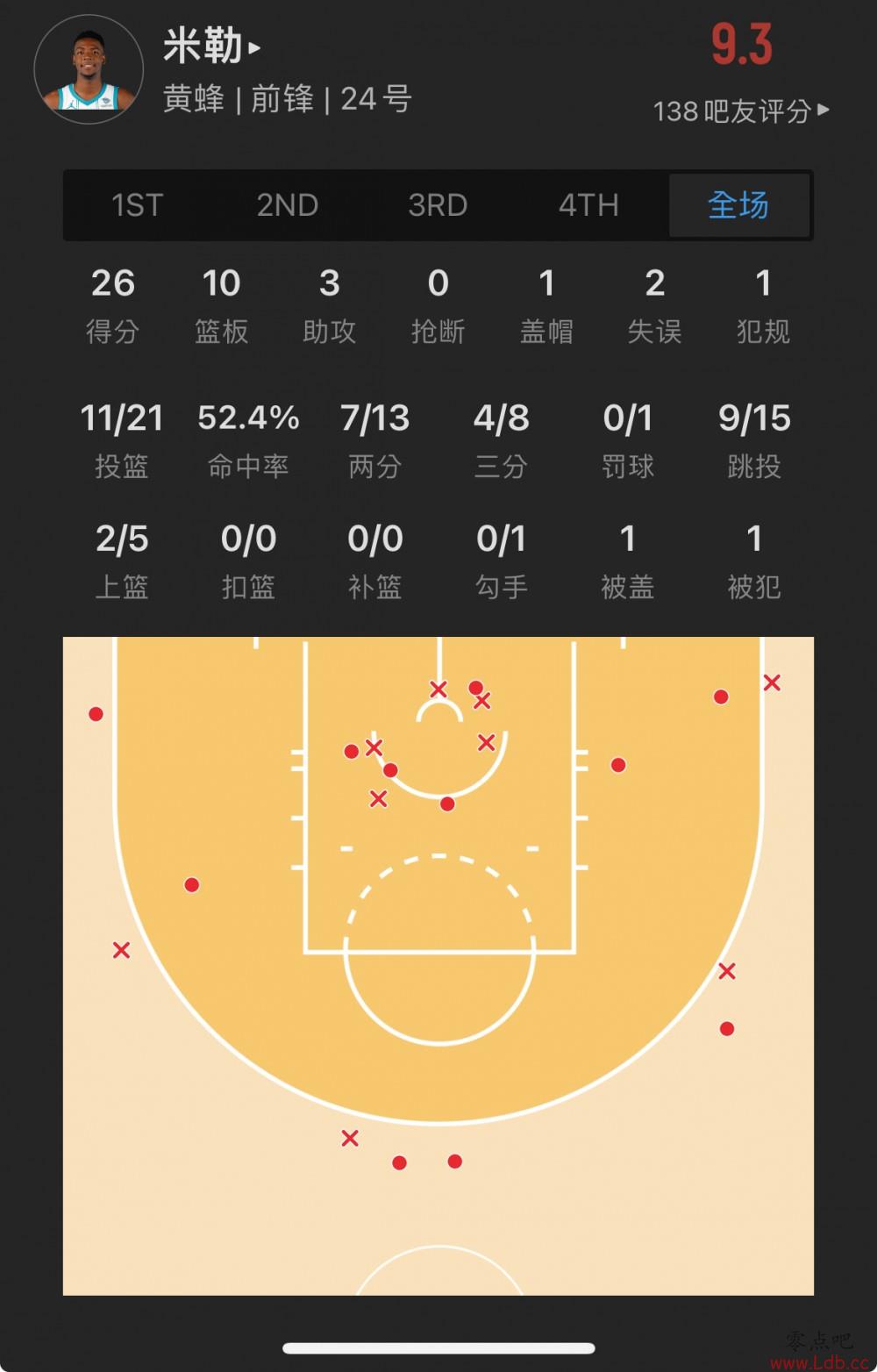黄蜂榜眼秀 布兰登-米勒 出战36.6分钟