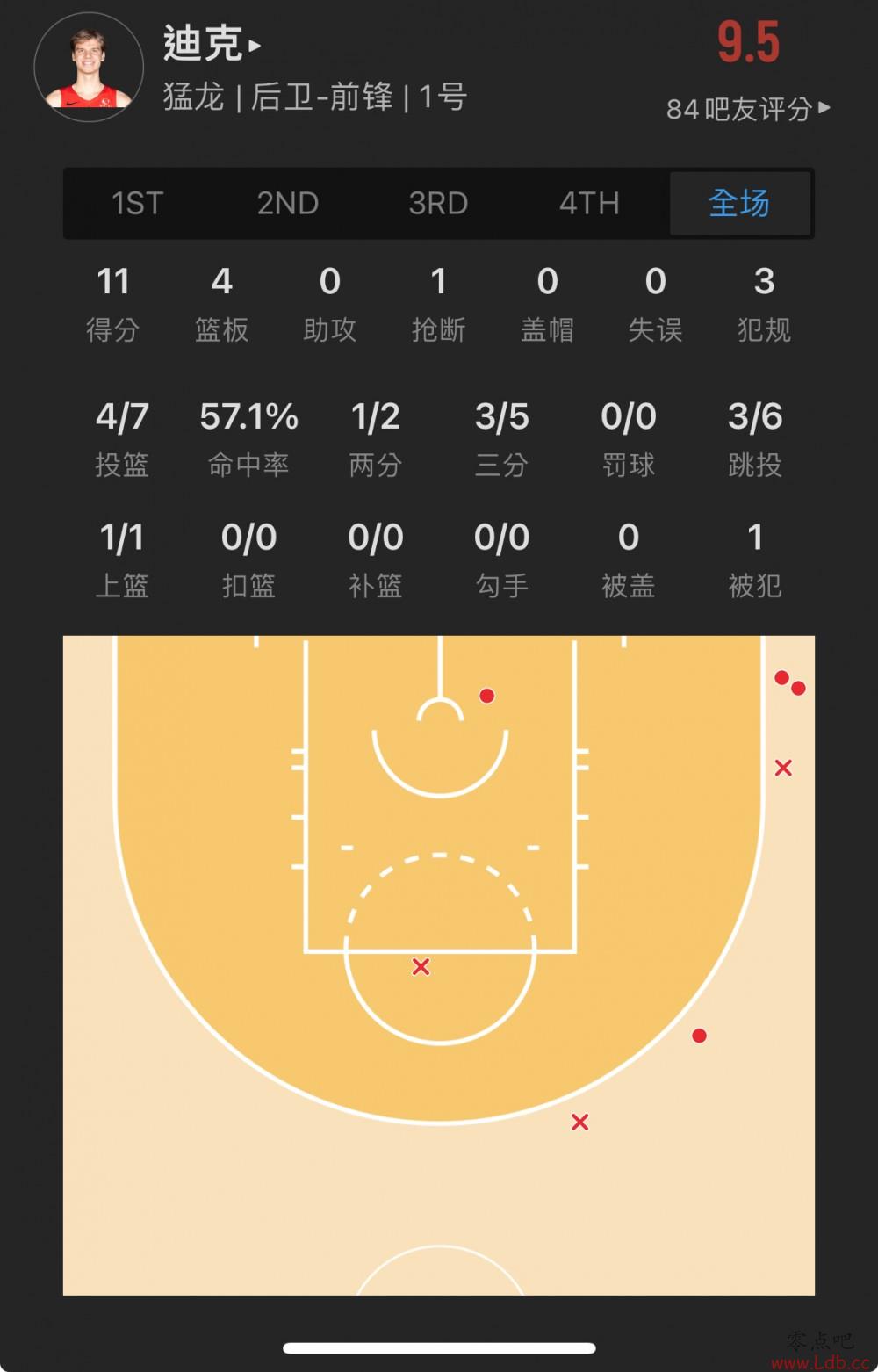 猛龙13号秀 格雷迪-迪克 出战24.1分钟