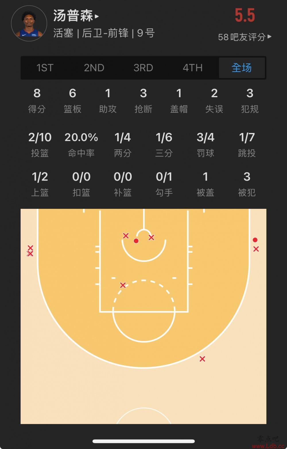 活塞5号秀 奥萨尔-汤普森 出战33.1分钟