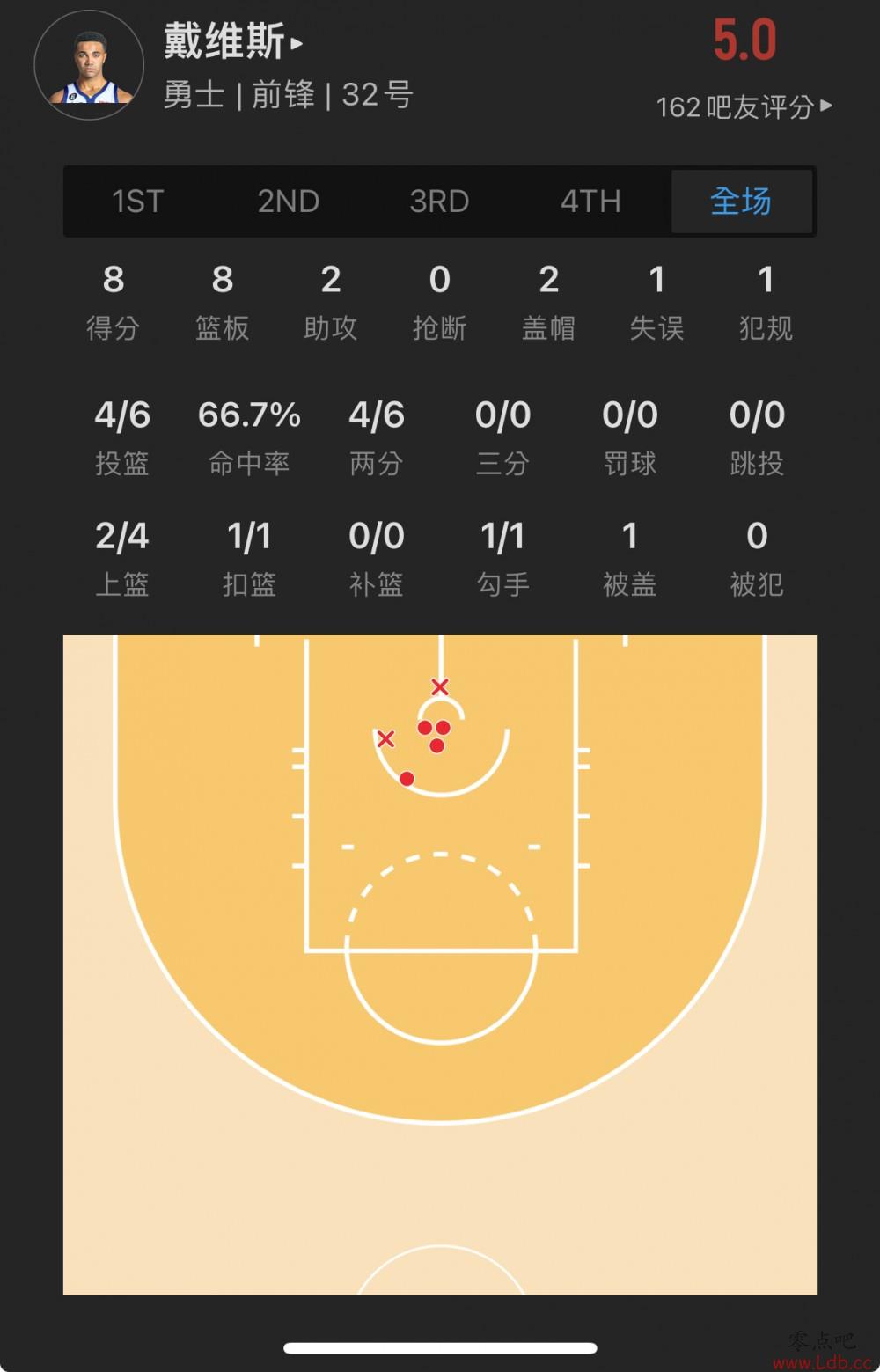 勇士57号秀 特雷斯-杰克逊-戴维斯 出战21.6分钟