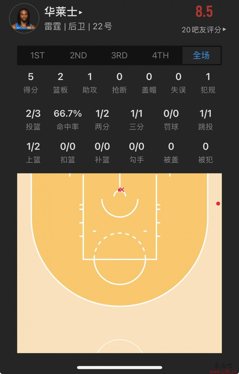 雷霆10号秀 卡森-华莱士 出战17.7分钟