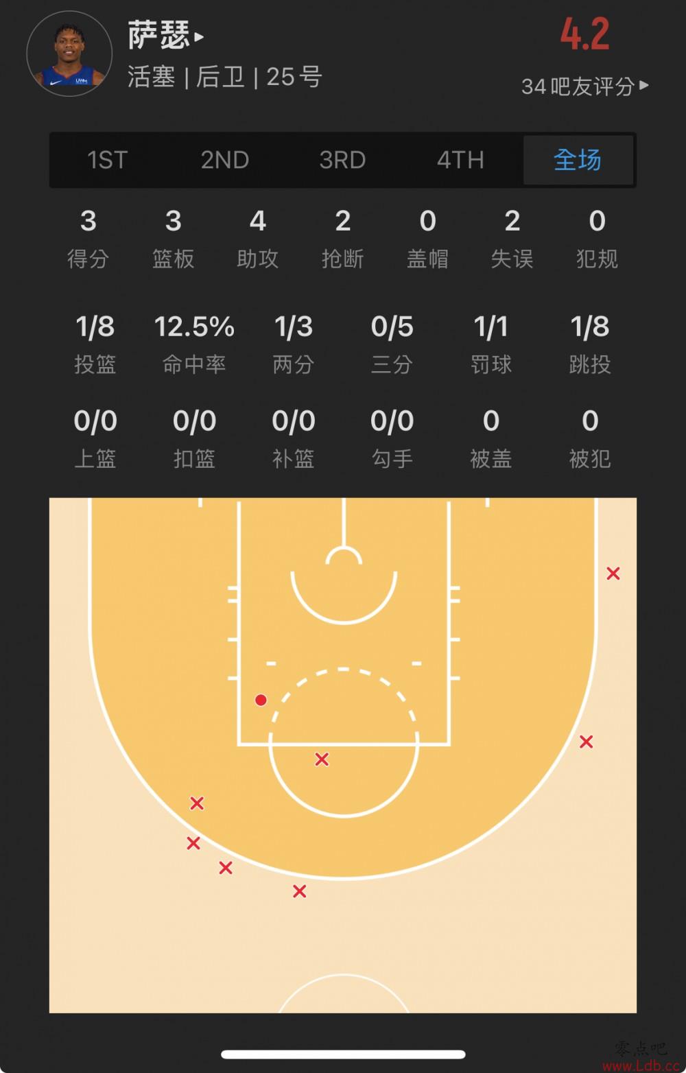 活塞25号秀 马库斯-萨瑟 出战25.1分钟